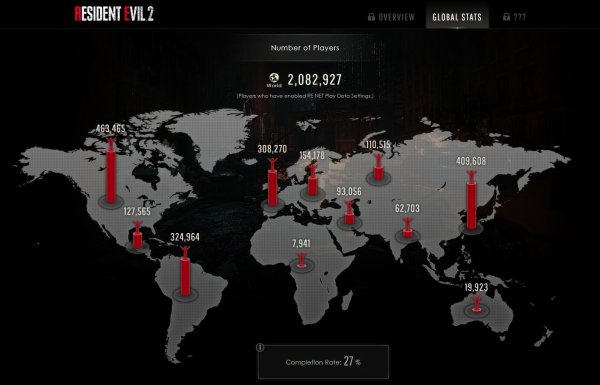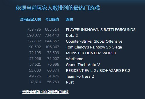 《生化危机2:重制版》一经发售就受到玩家们的一致好评,在Steam上好评率96%,好评如潮,根据Steam官方数据统计,《生化危机2:重制版》峰值人数达到了68374,当前也有5万多玩家在玩。