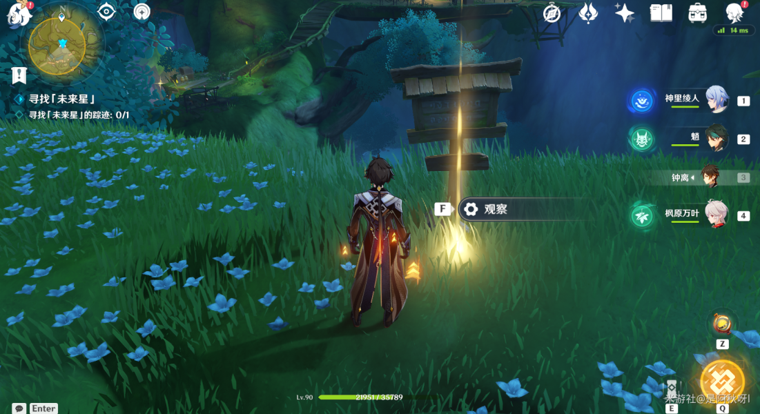 通过脚下的跳跳菇,跳上去拿到【未来星】。无需雷元素激活,普通状态下也可以够得到。