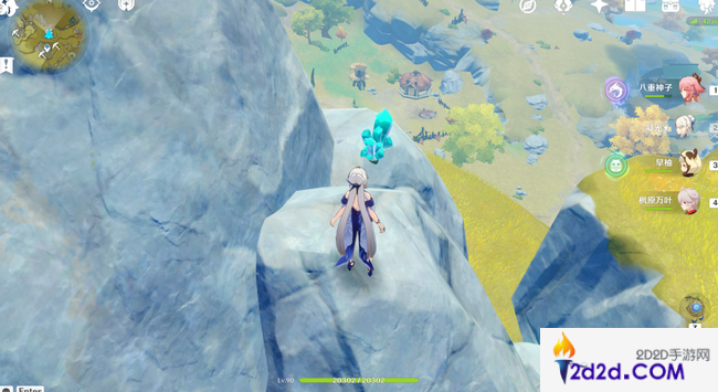 7.在6处往东北方向冲刺,经过丘丘萨满,下降一个平台回头看,此处2个水晶矿