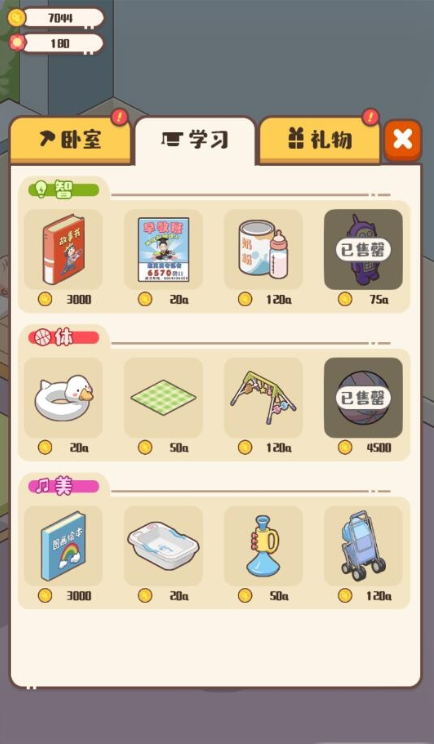 3、利用金币购买各种不同的家具来装饰房间,让娃娃在更舒适的环境下成长。