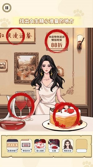 找出出轨证据是一款刺激的解谜游戏。游戏中,玩家将扮演一位侦探,需要通过收集线索、破解密码、解开谜题等方式,逐步揭开真相。游戏提供了多个关卡和挑战,每个关卡都隐藏着各种蛛丝马迹,玩家需要细心观察、推理和分析,才能找到确凿的出轨证据。感兴趣的朋友们快来下载体验吧。