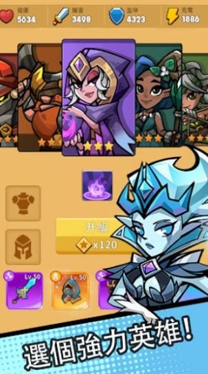 3、关卡挑战和成就系统:有多个关卡供你挑战,每个关卡都有不同的难度和奖励。 通过击败关卡中的敌人,你将解锁更多的英雄和装备。