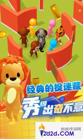 躲猫小能手是一款休闲益智游戏。玩家可以选择扮演躲藏者或寻找者,在游戏中展开一场激烈的追逐和躲避。作为躲藏者,玩家需要巧妙选择躲藏的地点,避开寻找者的视线。作为寻找者,玩家需要通过观察和推理,找到躲藏者的位置。游戏中有多个精心设计的地图和关卡,每个地图都有不同的布局和难度,给玩家带来挑战和乐趣。