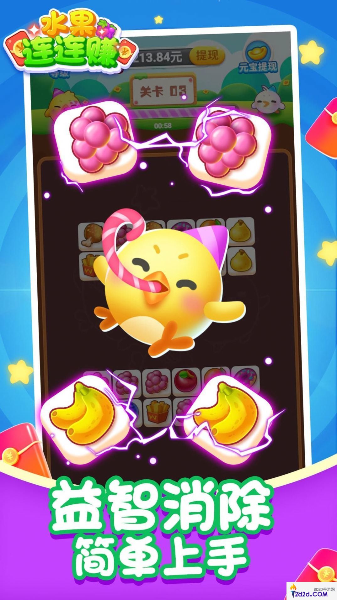 水果连连赚是一款非常有趣的闯关类手机游戏。游戏的核心玩法是将相同类型的水果进行消除,通过连接或匹配它们来完成任务。游戏中提供各种奖励,包括红包、虚拟货币或其他道具,以鼓励玩家继续游戏。另外玩家可以解锁奖励关卡,这些关卡可以提供更高的回报或挑战。