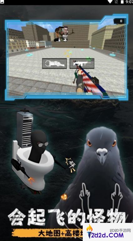 1、有趣的厕所射击冒险,自由射击消灭各种怪物;