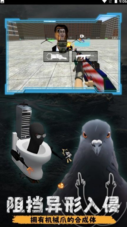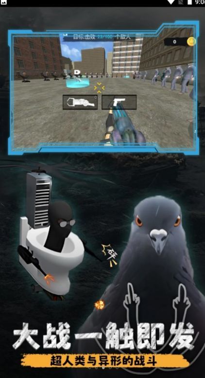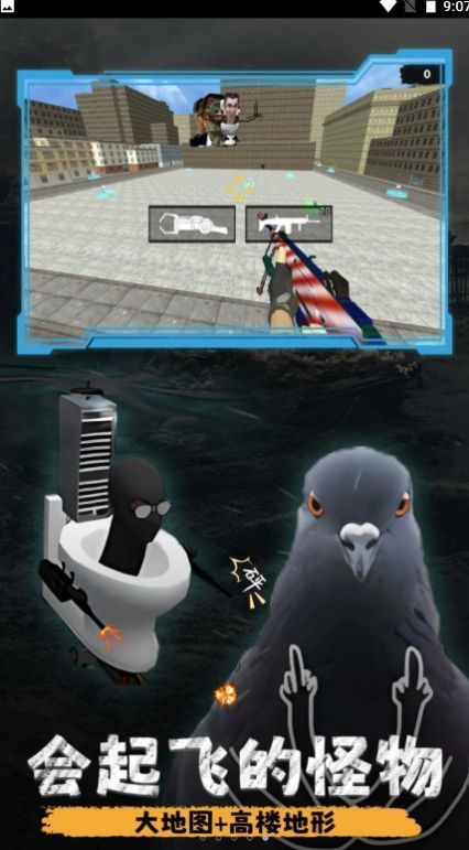 1.创新城市射击玩法,在厕所侠的角色下展开战斗冒险;