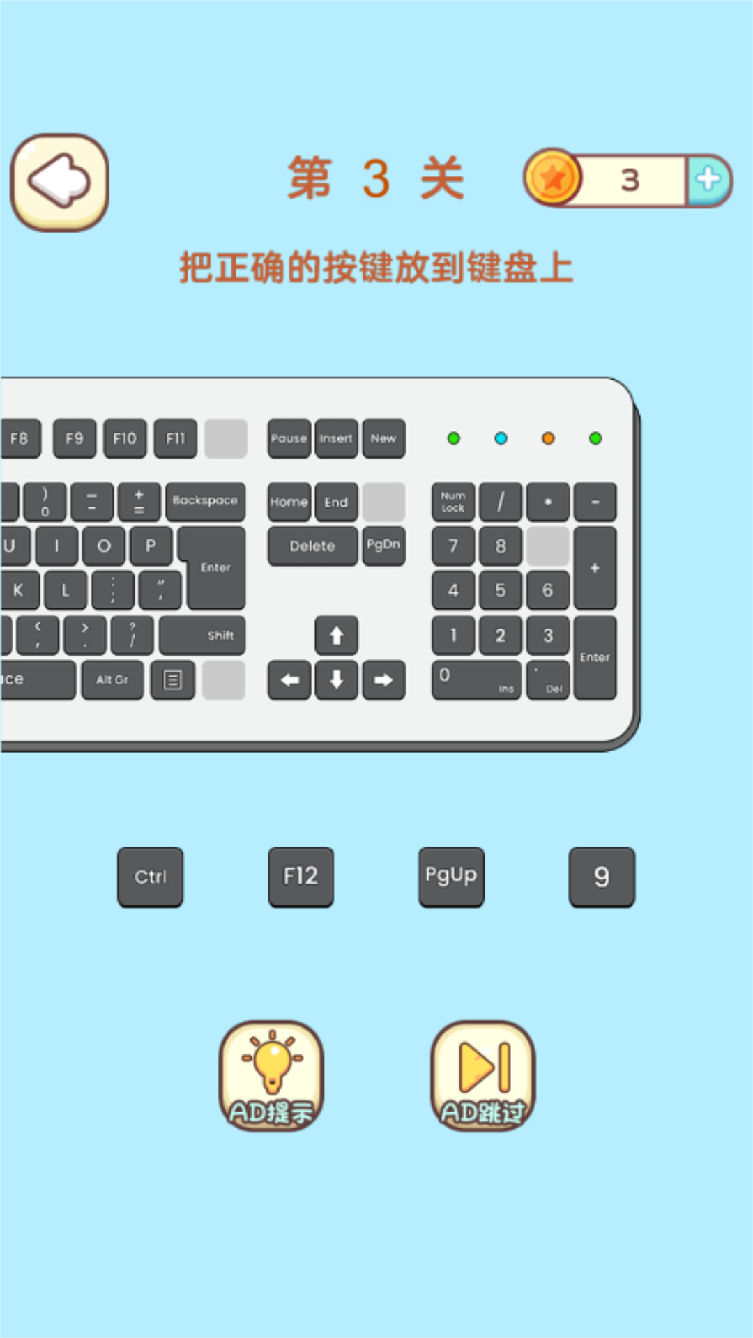 1.玩家可以使用提示卡来获得一些提示,或者使用跳过卡来跳过谜题;