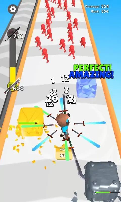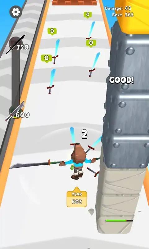 1、操作大刀击杀敌人,或许损坏场景,让手中的大刀越变越长