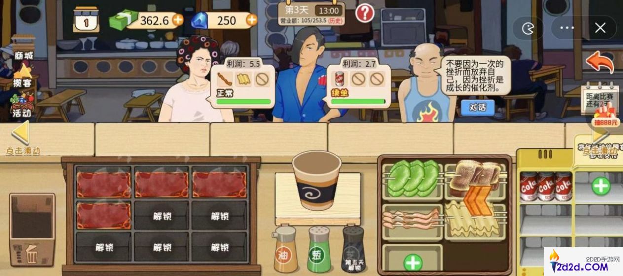 3、设计多个沉浸式夜市主题关卡,让玩家能够尝试不同的烹饪挑战。