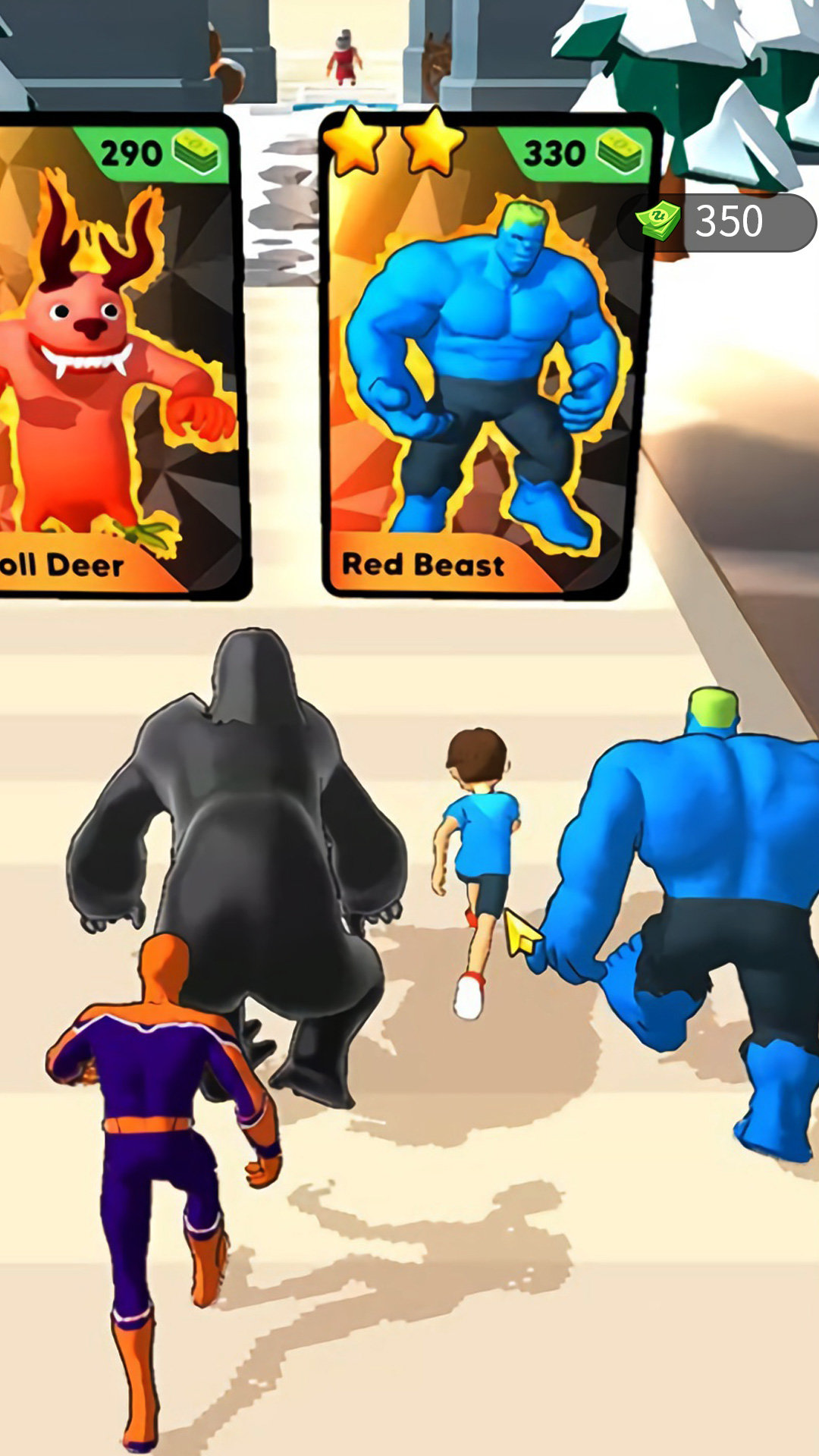 1.游戏中,玩家需要选择自己喜欢的英雄角色,然后就可以开始跑酷;