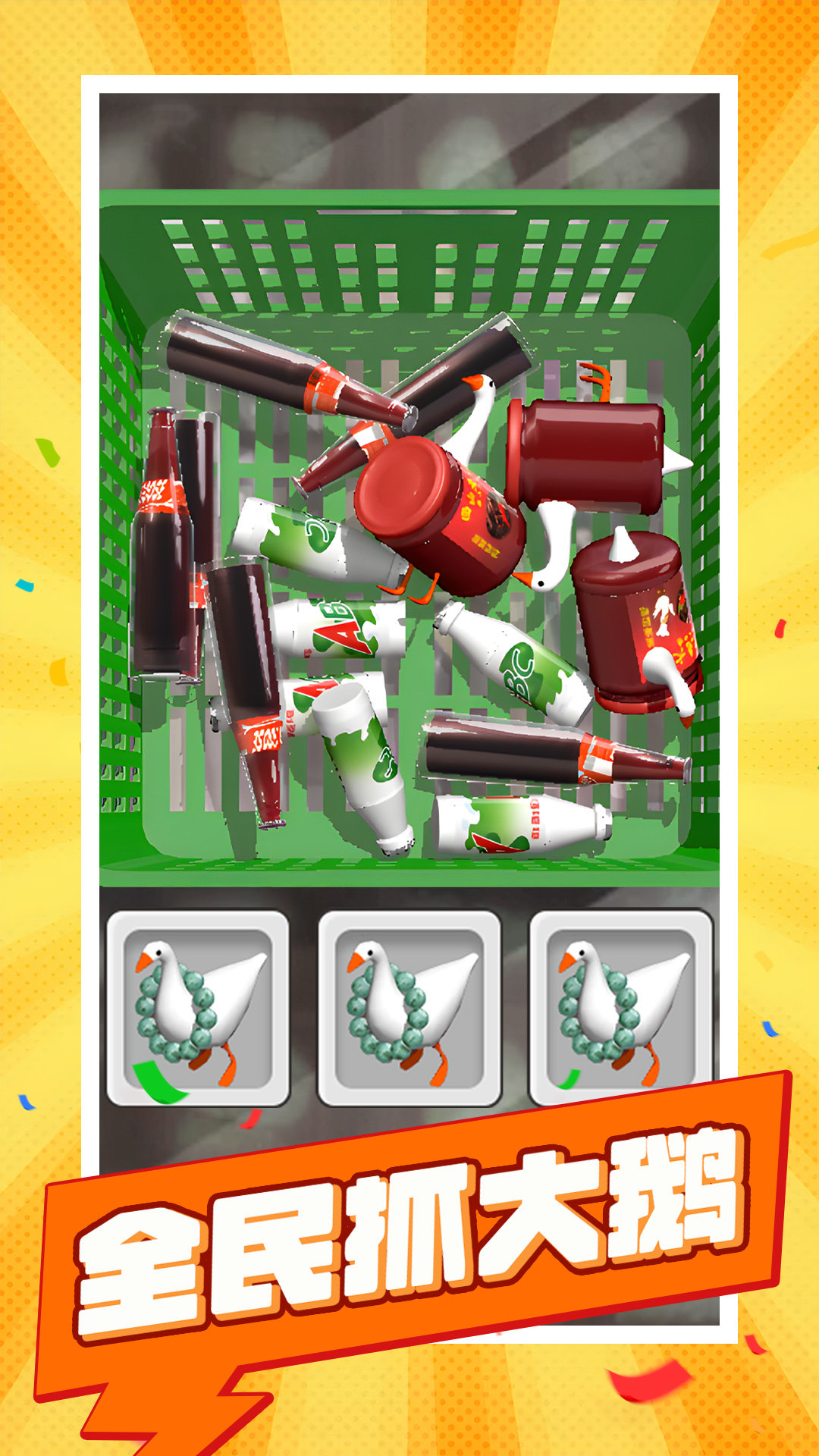 全民抓大鹅是一款非常好玩的休闲消除手游,在全民抓大鹅中玩家可以体验到非常有趣的消除玩法,你的任务就是要将相同的物品放在一起进行消除,在全民抓大鹅中还会有多种不同的关卡等你挑战哦,不同的关卡拥有不同的时间限制,游戏非常考验玩家的眼力,感兴趣的话不妨来下载试玩一下吧.