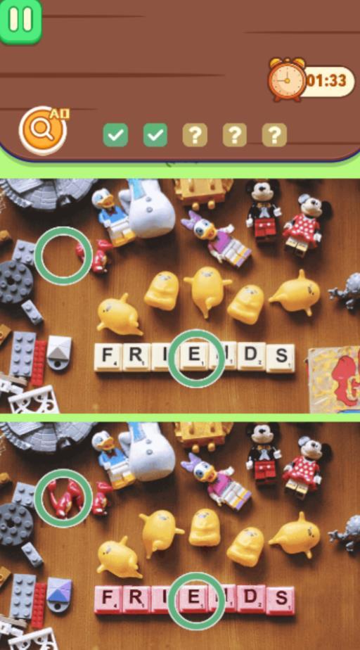 1、眼力找不同,一起来解压,没有什么的难度,随时可以玩;
