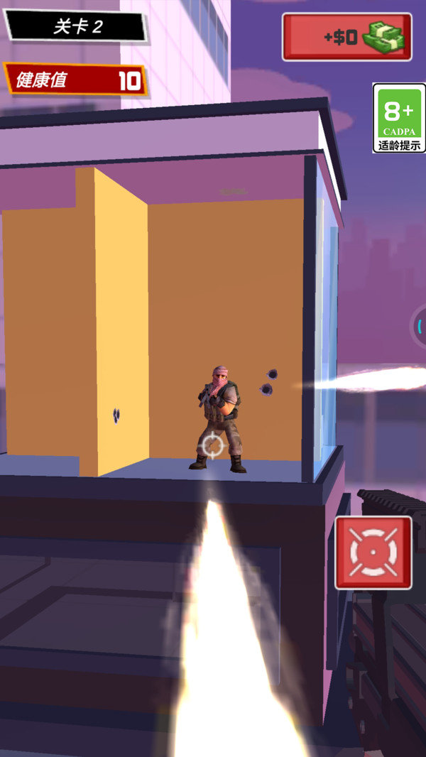 手枪打不到的敌人你该怎么办?别着急在这里你可以通过子弹的反弹,投掷手雷;
