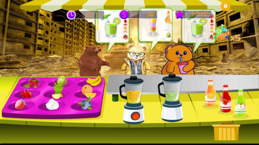 2、玩家需要亲自动手制作各种口味的果汁,开启欢乐的挑战。