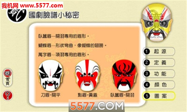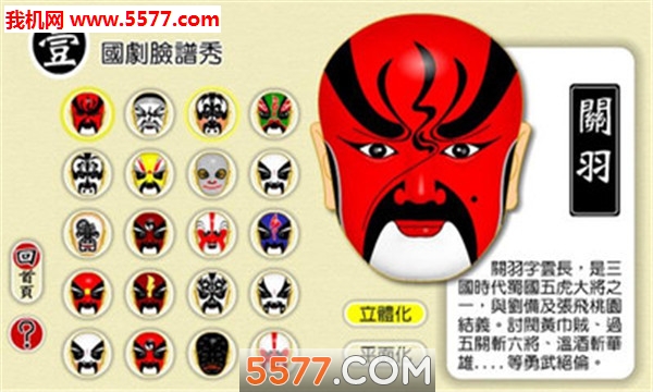 脸谱模拟器游戏由本站提供下载,这是一款不仅好玩还能学到相关知识的模拟器游戏,游戏中几乎收纳了所有的国剧脸谱,除了中国脸谱之外,游戏还收录了很多外国的脸谱,同时玩家还能自己绘画出属于自己的脸谱,欢迎下载!