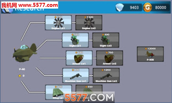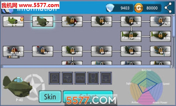 您可以从各种从二战时期着名飞机可供选择,你可以升级你的飞机的移动速度,加载速度和攻击力,当你积累经验。
