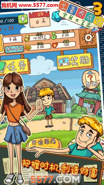 游戏中,你去实现由一个一穷二白的穷小子变成一掷千金的大土豪的梦想。游戏中,处处充满挑战,处处充满机遇。机遇是给有准备的人。抓住机会,实现你人生的逆袭。