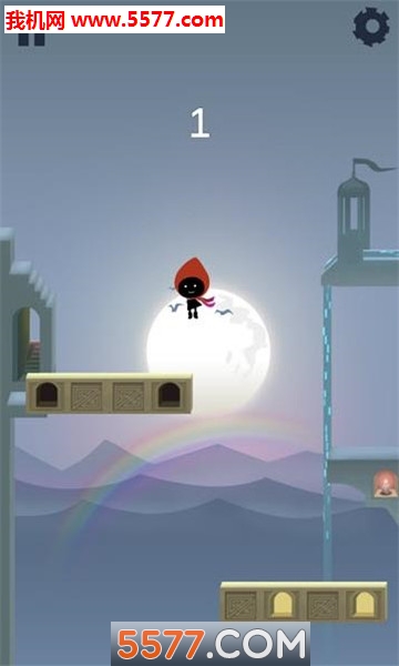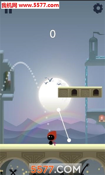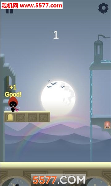 1、趣味向上跳跃玩法,控制小人手指滑动屏幕的方向进行跳跃并顺利站在台阶上;
