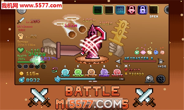 穿越草原,沙漠,山脉,薄雾和地牢,杀死数百个怪物和收集史诗赃物在这个闲置RPG!轻击以施放可怕的咒语,