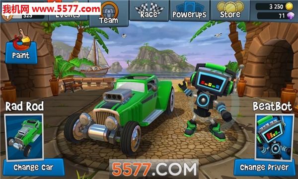 2.丰富多彩的沙滩场景地图,驾驶心爱的定制赛车驰骋在风景如画的沙滩上。