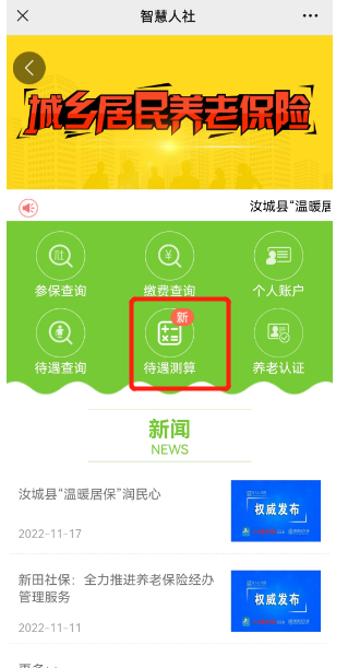 在居民养老保险页面选择【待遇测算】