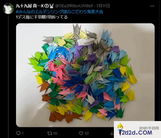 日本玩家用千纸鹤记录《黄金树幽影》每日战果 每死一次就折一只