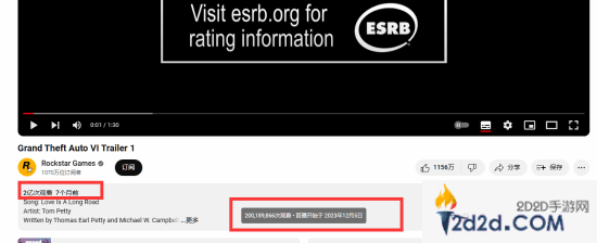 据ResetEra上的一名用户发现, Youtube上《GTA6》官方预告片的观看次数现已超过2亿次。截至撰写本文时,该预告片的观看次数已达200,189,866次,仅用了7个多月的时间就达到了这一里程碑。