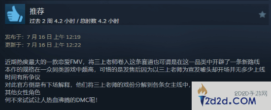 《我为情狂》Steam褒贬不一:价格偏高 三上戏份太少