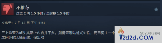 给出差评的玩家指出,本作以三上悠亚为卖点,但实际上三上的戏份并不算多,定价在同类游戏中也算高的。此外,游戏中仍有一些Bug需要修复,影响了玩家体验。