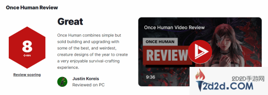 点击下载IGN为《七日世界》打出了8分的成绩,称其“创造出了令人享受的生存建造体验”。
