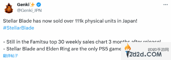 日前,据推主Genki消息,《剑星》现已在日本出售超111000份实体盘。