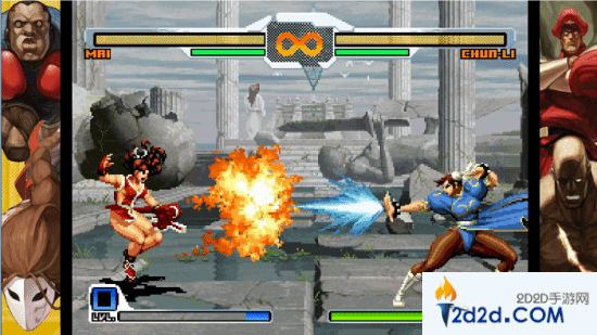 作为SNK和Capcom联动合作的格斗游戏,本作中包含了来自两家公司的36位角色。SNK这边有《饿狼传说》中的不知火舞、特瑞,《拳皇》中的草薙京、八神庵等格斗家出站;而Capcom这边则包含了《街头霸王》隆、春丽等经典角色,甚至还有《洛克人》中的zero。