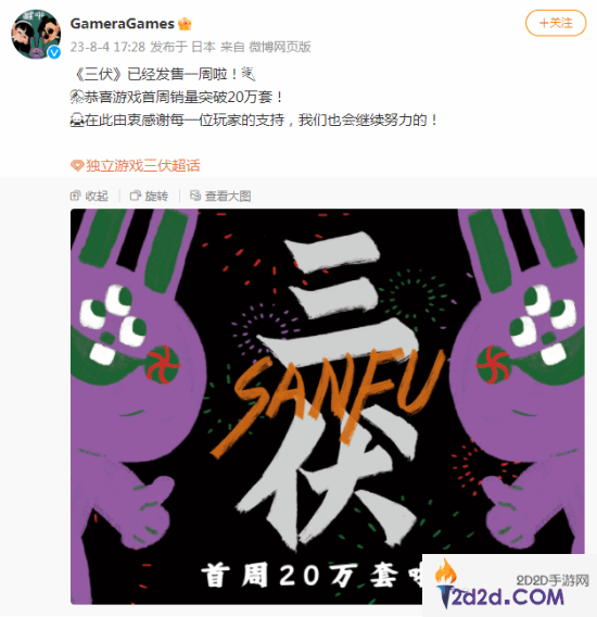 值得一提的是,《三伏》自发售以来就取得了不俗的成绩,发售仅一小时在线人数就超1.3万人,首周销量更是突破20万份。