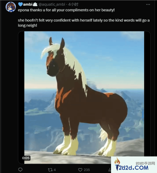 下方评论区有不少玩家配合了他的说法,纷纷称赞他漂亮的小马“epona”。aquatic_ambi回应道,”epona谢谢你们对她的赞美。她最近没什么自信,所以这些赞扬对她来说非常重要!“