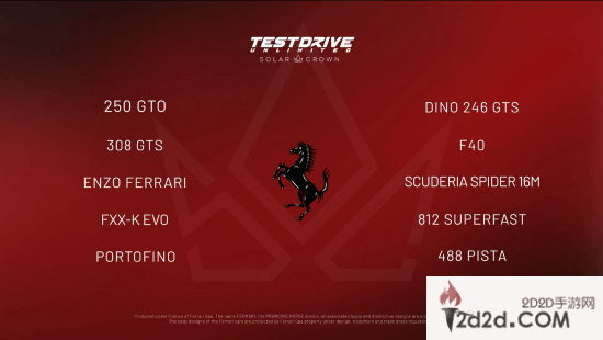 该预告中展现了意大利品牌法拉利的多款车型,视频中的车型都可以在游戏中使用。