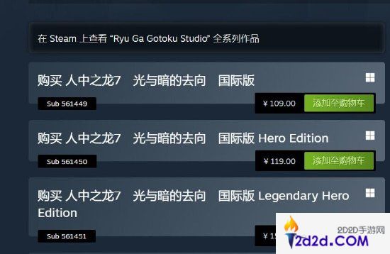 《如龙7》Steam国区价格永降!标准版从389元降至109元,英雄版从459元降至119元,传奇英雄版从599元降至159元。