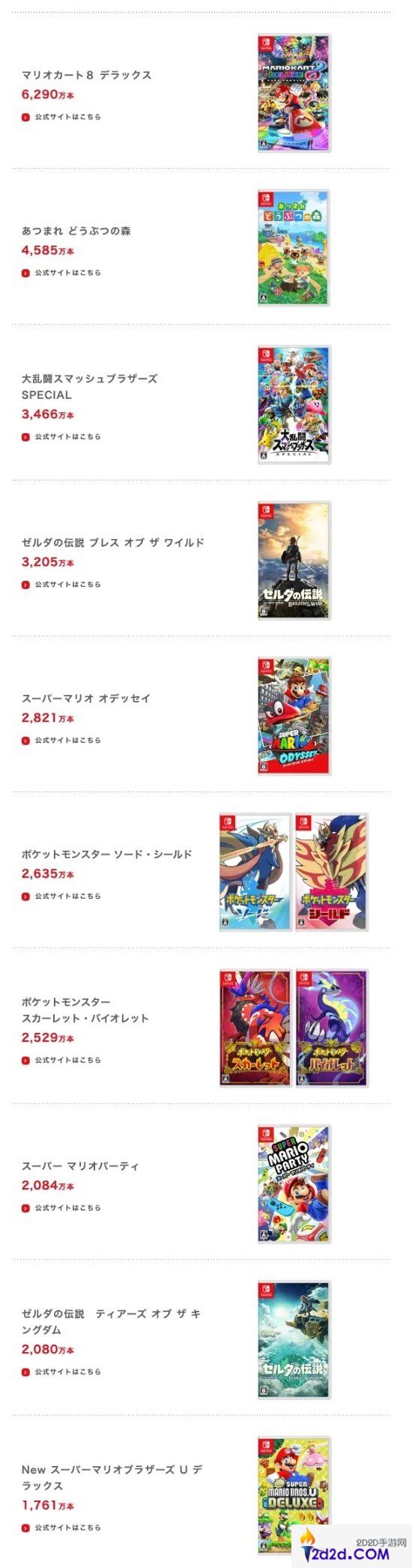 8月2日,任天堂公开了截至2024年6月30日的财报,随后任天堂更新了Switch迄今为止最畅销的10款游戏,《马里奥赛车8:豪华版》最为畅销,销量达6290万份,紧接其后的则是《集合啦!动物森友会》的4585万份和《任天堂明星大乱斗:特别版》的3466万份,一起来看下。