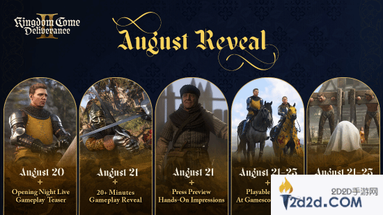此外,8月21日到8月25日,《天国:拯救2》还会为参展玩家提供亲自上手试玩的机会。在此期间,官方还会公布游戏的新情报,可能包含该作的具体发售日期,更多消息请关注后续报道。