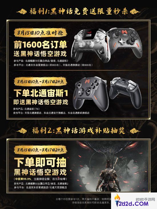 活动一 规定时间段内购买参与活动的北通手柄即送《黑神话:悟空》游戏!