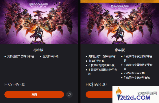《龙腾世纪4:影障守护者》确定将于10月31日正式发售,该作也已在各大商店、平台上架,开启预购。Steam标准版售价298元,豪华版售价398元。主机标准版售价549港币(约合人民币505元),豪华版698港币(约合人民币642元)。