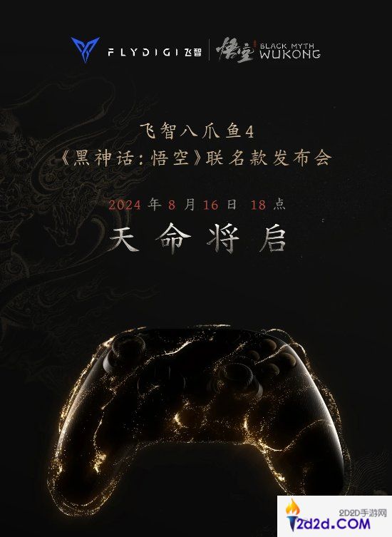飞智官方今日宣布,八爪鱼4《黑神话:悟空》联名款手柄发布会将于8月16日18点举行。