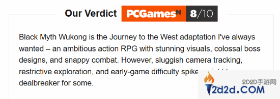 PCGamesN为《黑神话:悟空》打8分:年度最佳竞争者