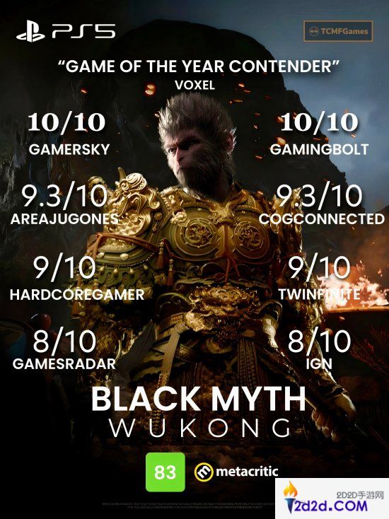 推主TCMF2汇总了部分媒体对《黑神话:悟空》的评分,并自制了一张媒体高分图,标题为:“年度最佳游戏竞争者。”一起来看下。