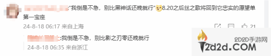 微博评论区有人吐槽道:“‘我倒是不急,别比《黑神话》还晚就行’8.20之后丝之歌将回到它忠实的愿望单第一宝座。”“我真幸运,玩完黑猴就能玩《丝之歌》了”。