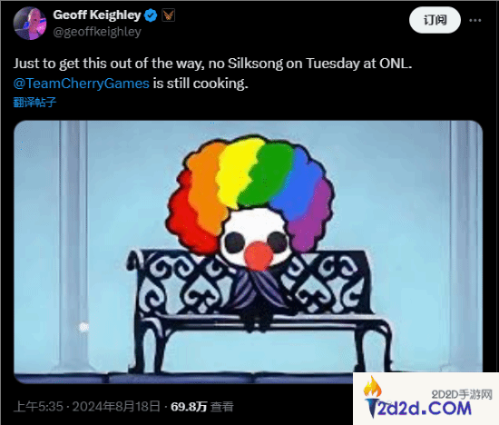 推文中提到:“为了解决这个问题,周二举行的开幕夜直播中不会举办《丝之歌》活动。 TeamCherryGames仍在筹备中。”