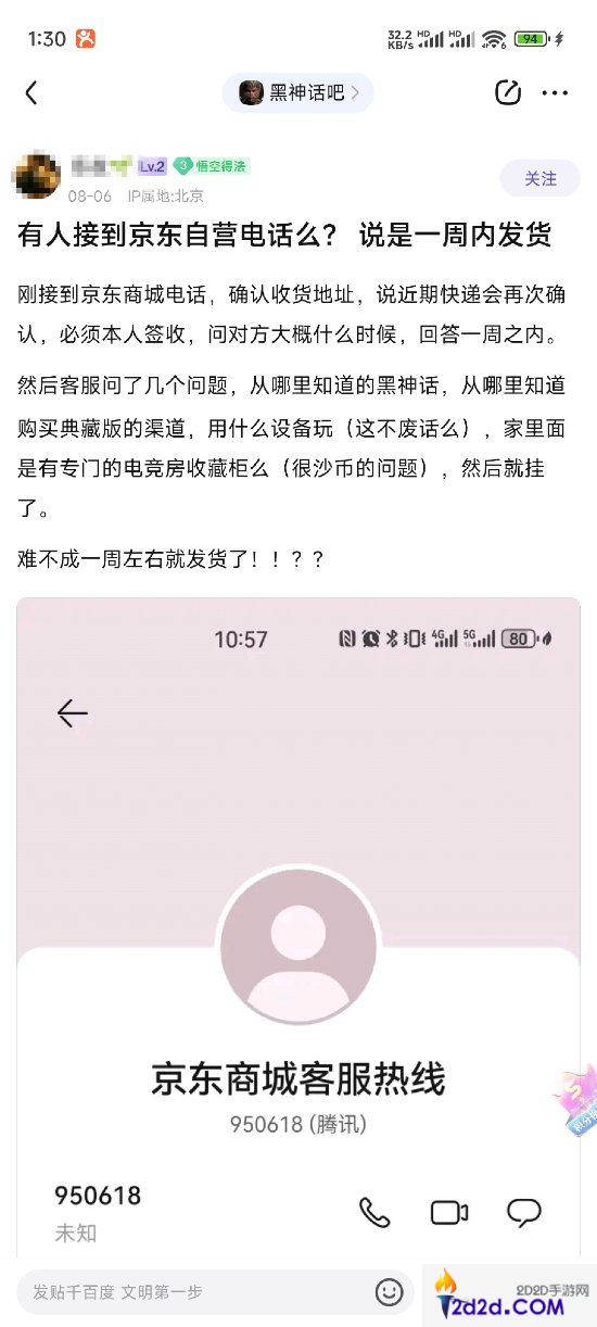 有玩家在评论区分享了此前一位老哥在贴吧的吐槽,他表示自己接到了京东自营的电话,说实体版会在一周内发货,但客服问了很多问题让他一头雾水,随后电话就挂了。