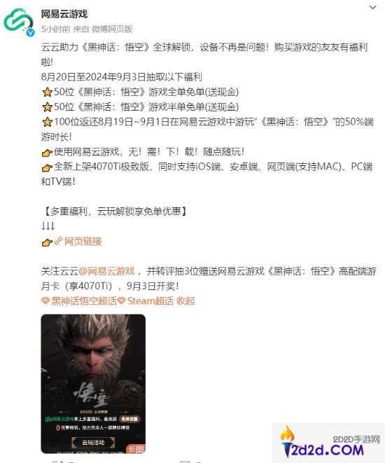 手机也能玩“黑猴”!网易云游戏明日上线《黑神话》4070Ti极致版