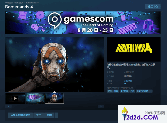 在今日凌晨的科隆开幕夜上,《无主之地4》首次公开预告视频,宣布将于2025年发售。目前,本作的Steam页面已经正式上线,发售日为即将推出,页面显示本作支持简体中文及中文配音。
