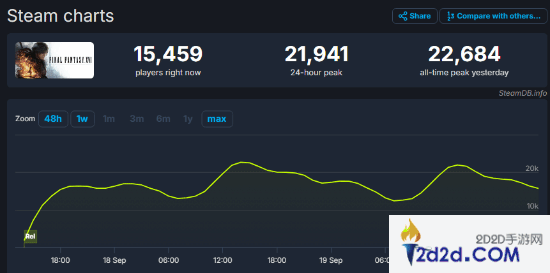 《FF16》Steam峰值人数超2.2万 强于《FF7重制版》