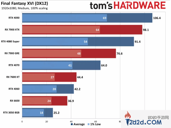 而在不同配置的游戏预设选项下(不开帧生成),《最终幻想16》表现同样不乐观,许多天梯排名靠前的显卡也还是不能保持最低60帧游玩本作。